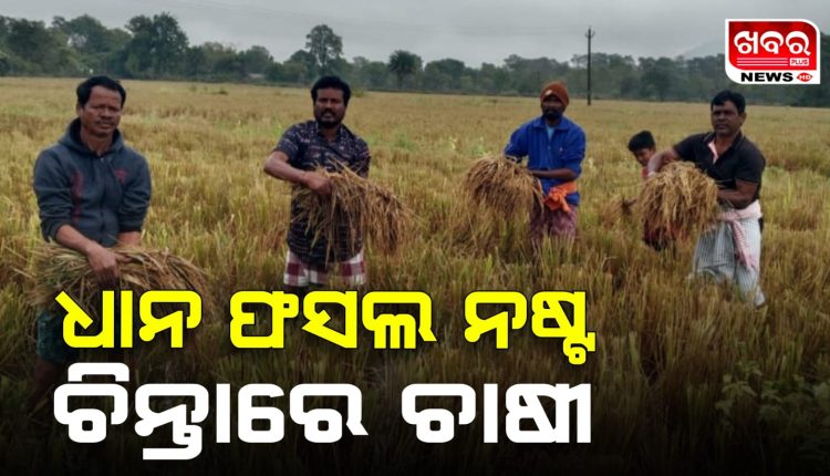 ଲଘୁଚାପ ଜନିତ ବର୍ଷାରେ ଧାନ ଫସଲ ନଷ୍ଟ। ଚିନ୍ତାରେ ଚାଷୀ ।